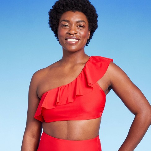 Product Item: Red flounce best sale bikini top