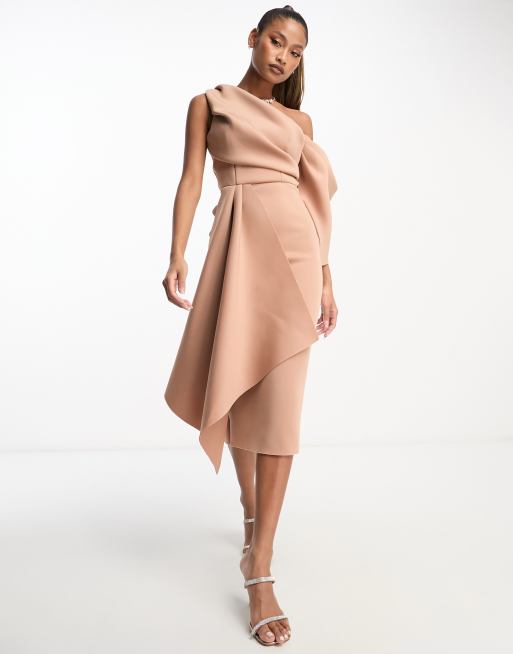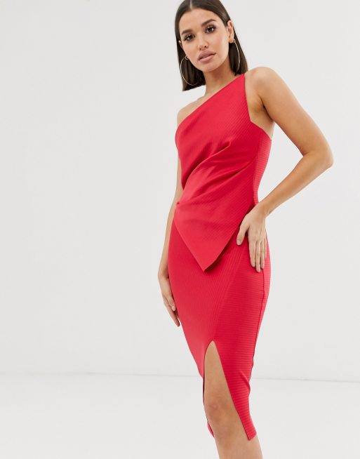 Asos one shoulder tuck detail best sale midi dress