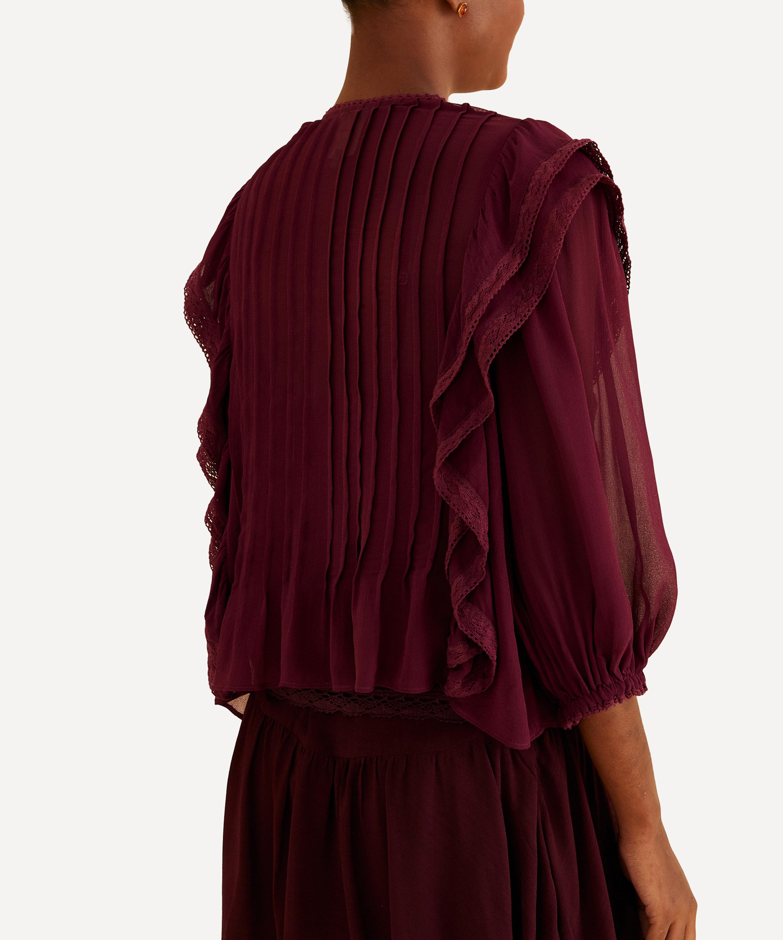 Burgundy ruffle best sale blouse