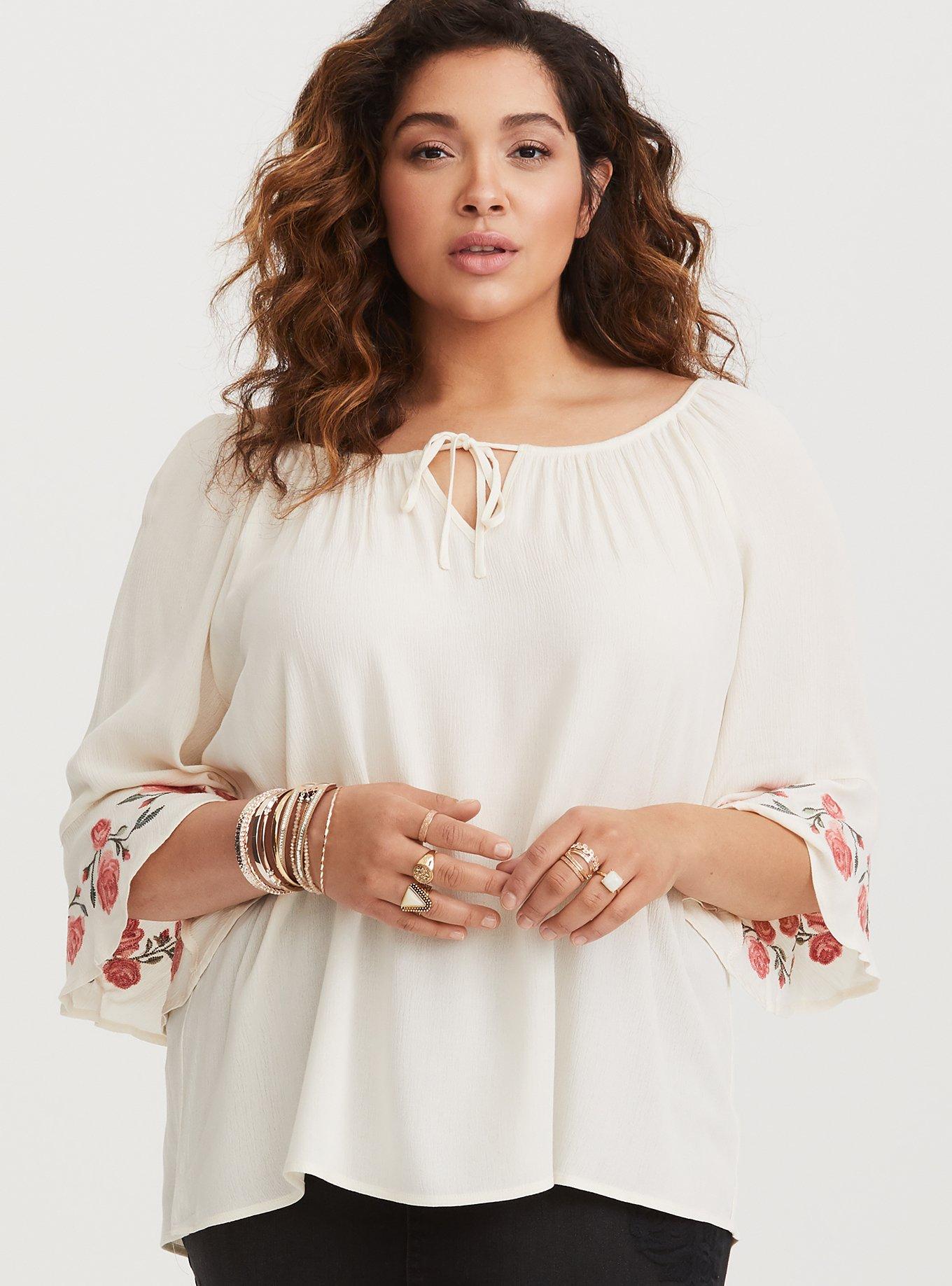 Embroidered peasant top plus best sale size