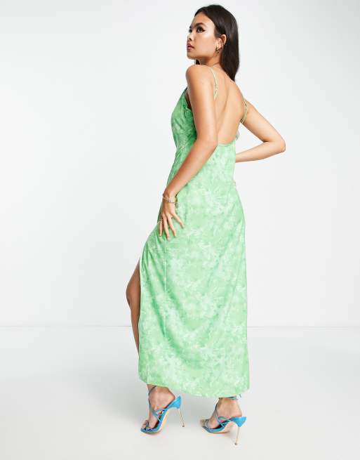Green floral best sale slip dress