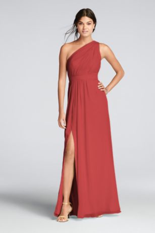 One shoulder best sale chiffon gown
