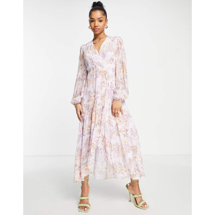 Ruffle sleeve high best sale low maxi dress