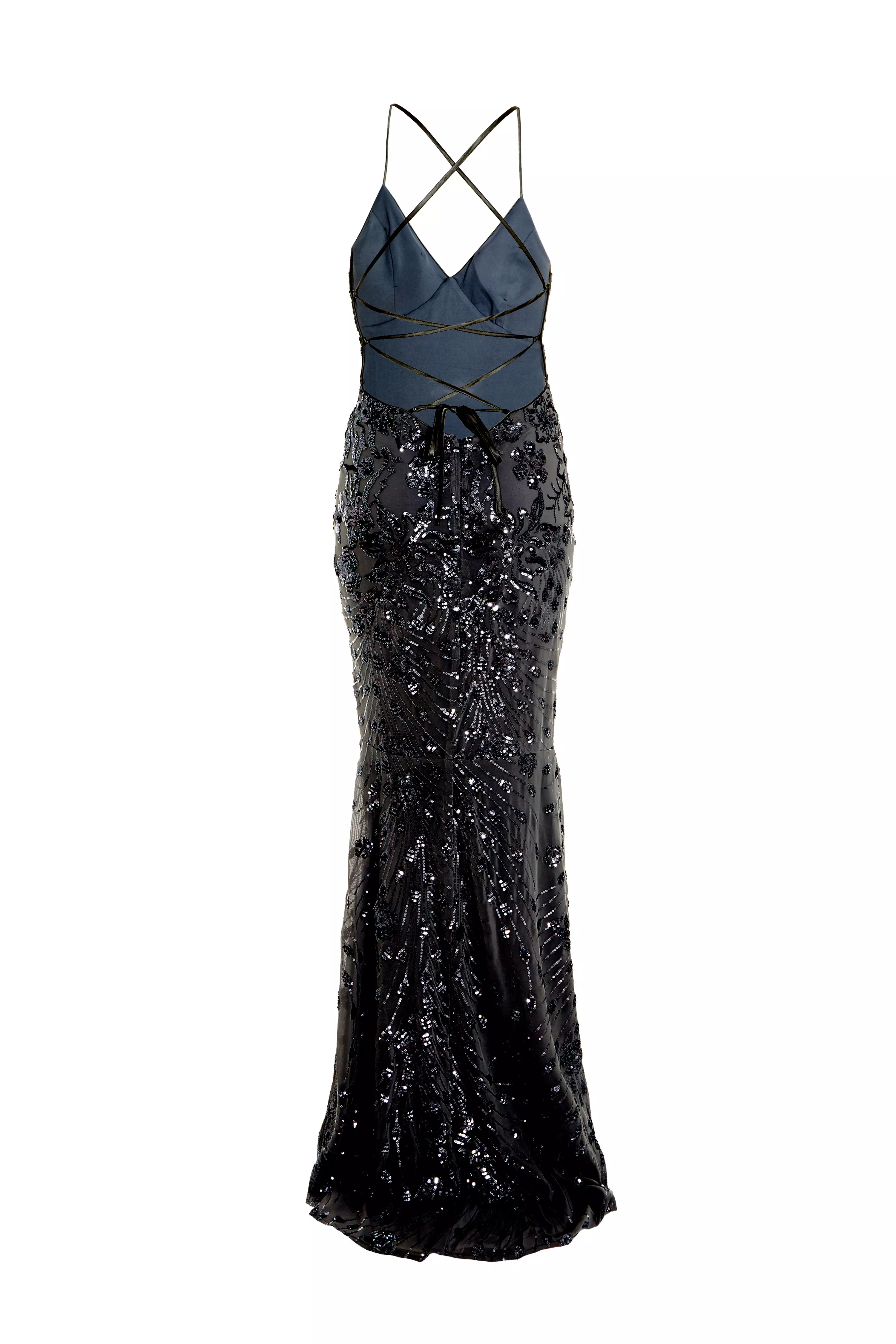 Product Item: Quiz black lace best sale fishtail maxi dress