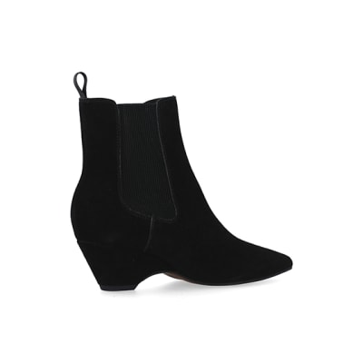 Black leather kitten heel best sale boots