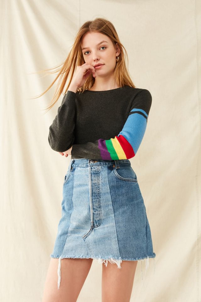 Denim skirt with rainbow best sale stripe
