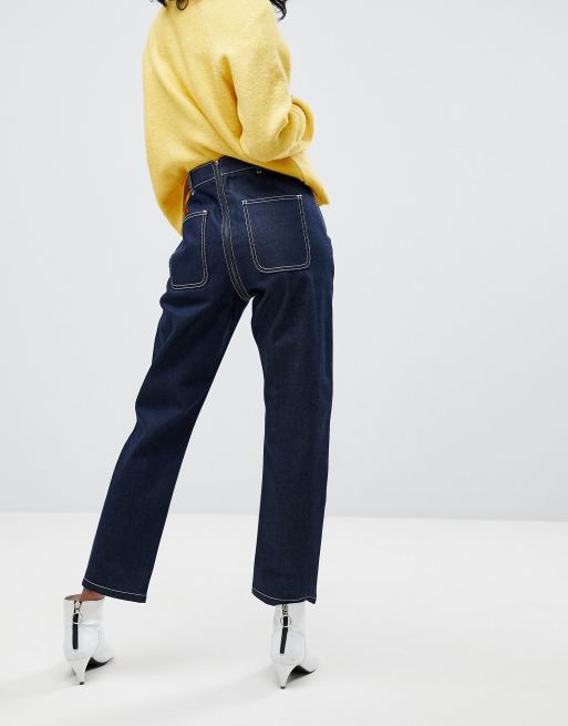 High waisted jeans with zip best sale at back