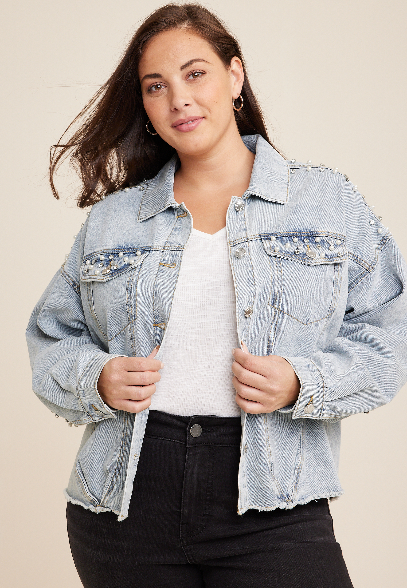 Product Item: Plus size pearl jean best sale jacket