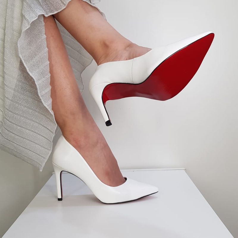 Product Item: Scarpin branco best sale sola vermelha