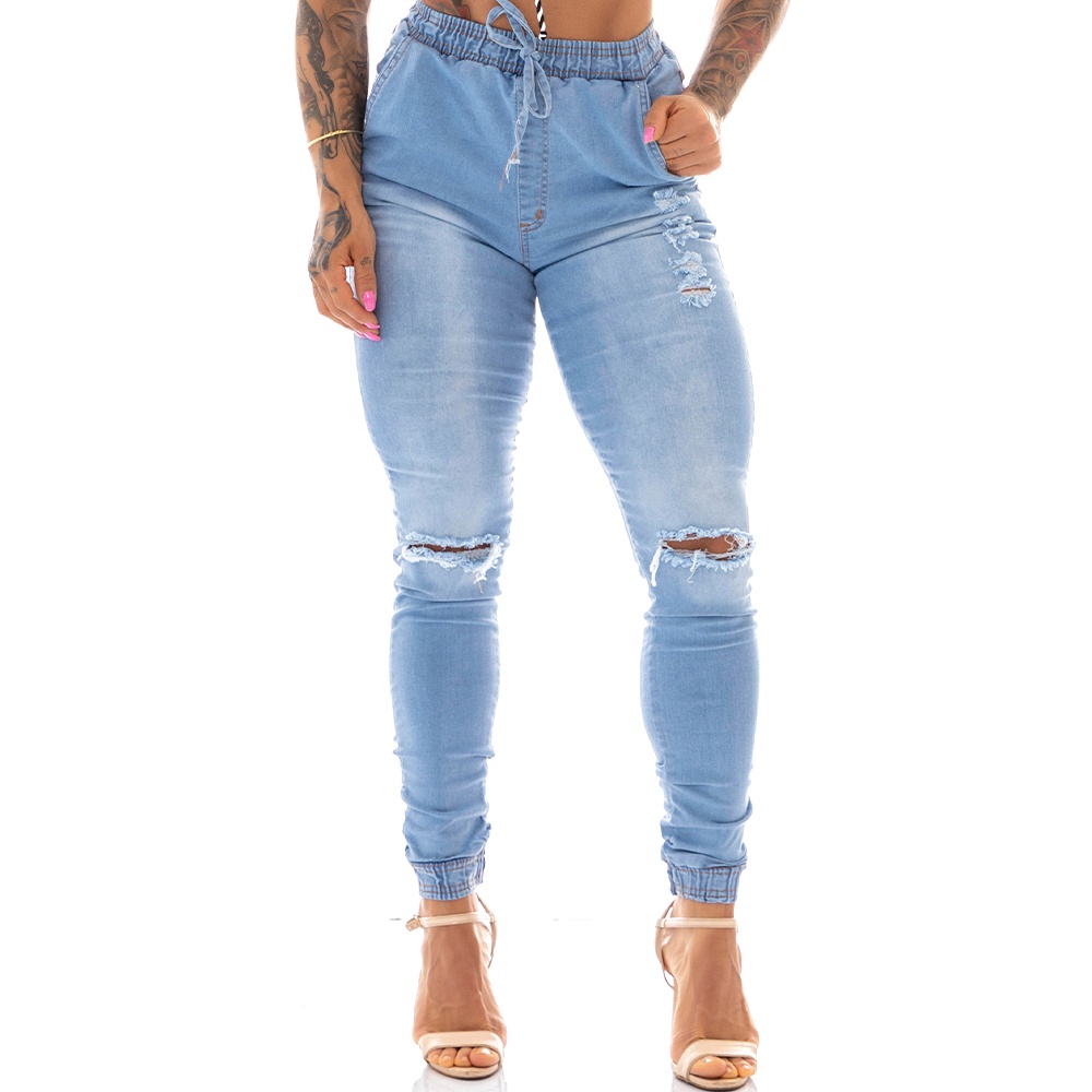 Product Item: Calça jeans feminina com best sale punho