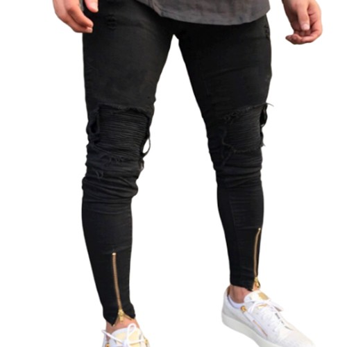 Calça preta com ziper na best sale barra masculina