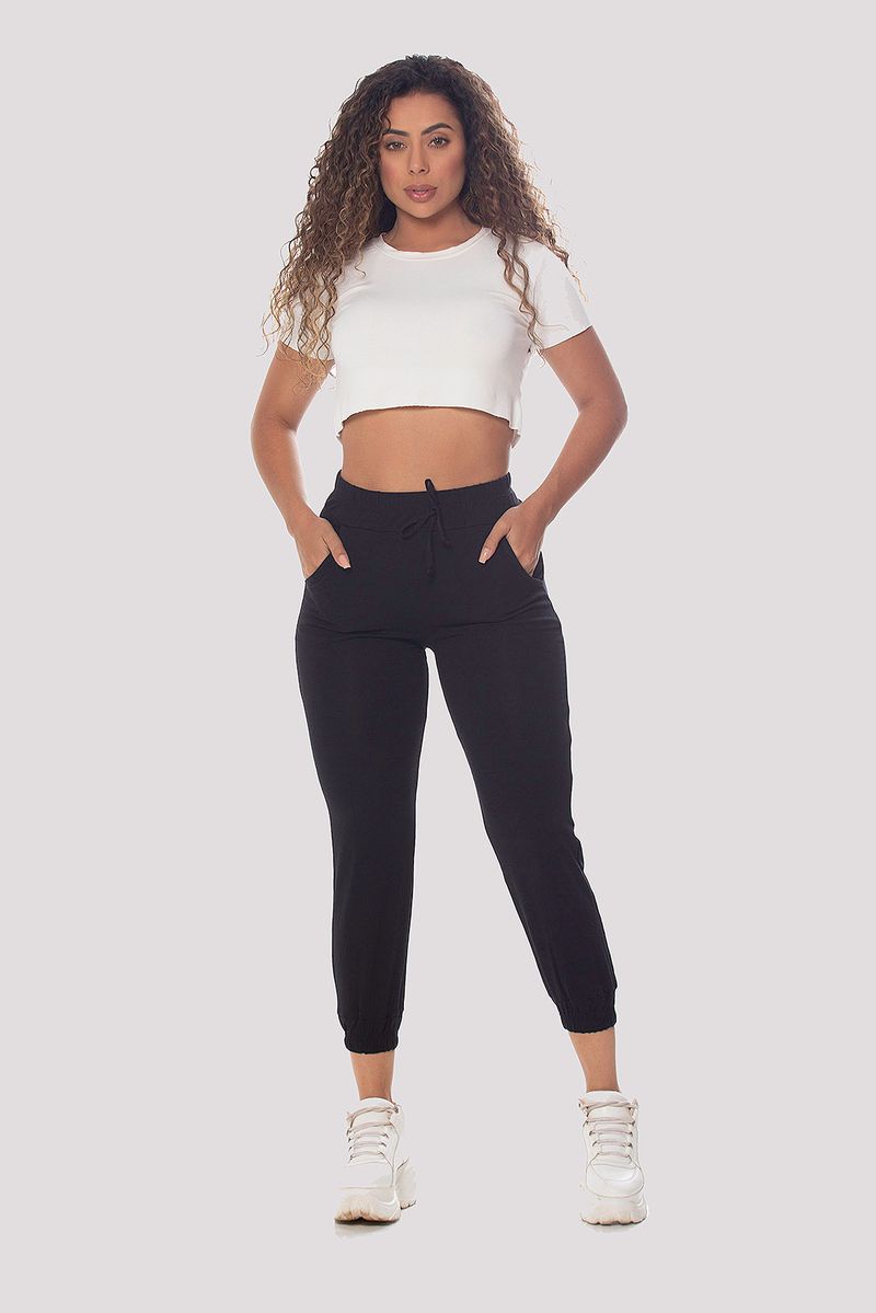 Calça preta best sale com punho