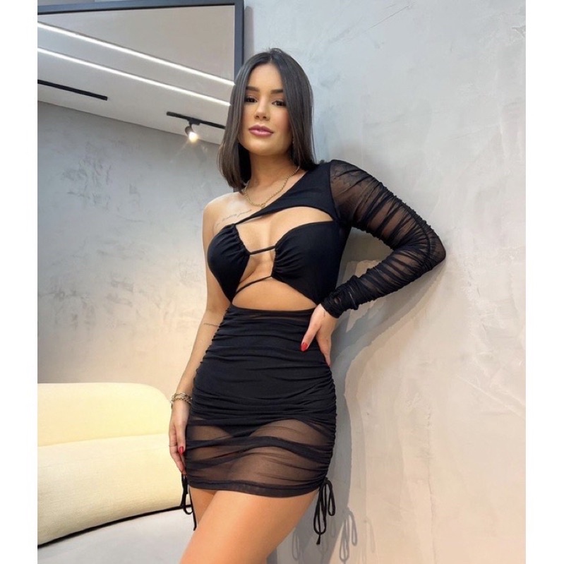 Product Item: Vestido com decote best sale transparente de tule