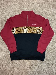 Product Item: Leopard panel half zip best sale sweatshirt
