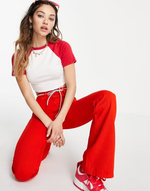 Product Item: Red and best sale white raglan
